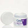 Nighttime is the skin’s chance to help renew itself, and a properly formulated night cream provides hydrating and rejuvenating benefits. We recommend looking for formulas designed with hyaluronic acid, niacinamide and ceramides to hydrate, calm and restore the skin barrier, like our CeraVe Skin Renewing Night Cream, which also features peptides to help improve the appearance of fatigued skin.